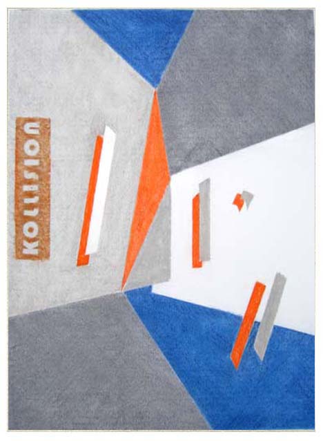 Eine Arbeit mit mehr experimentellem Charakter. Kleinere Farbflächen sind eingebunden in größere. Simulation von Schattenwurf.