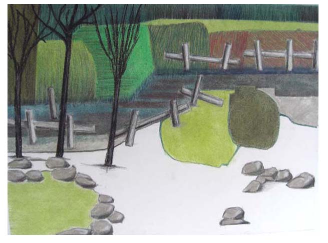 ..nach einer Zeichnung in meinem Skizzenbuch. Hier habe ich dann versucht das Motiv im Stil des etwas vergessenen Künstlers Bernard Buffet darzustellen. Urteil: misslungen!